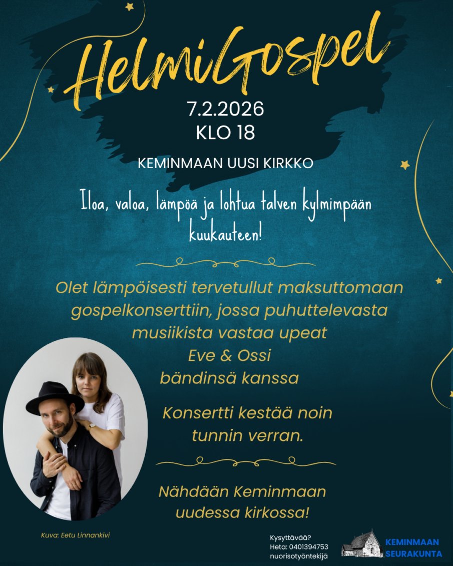 Tervetuloa lämminhenkiseen gospelkonserttiin Keminmaan uuteen kirkkoon!
