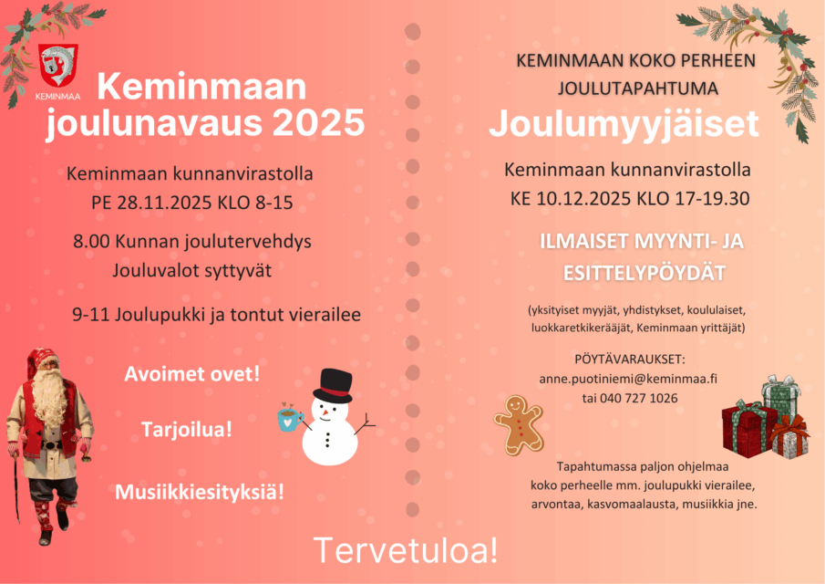 Keminmaan kunnanvirastolla perjantaina 28.11.2025 kello 8-15