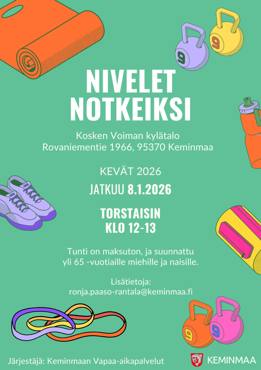 Nivelet notkeiksi – Kosken Voiman kylätalolla 8.1.2026 alkaen torstaisin kello 12.00-13.00.